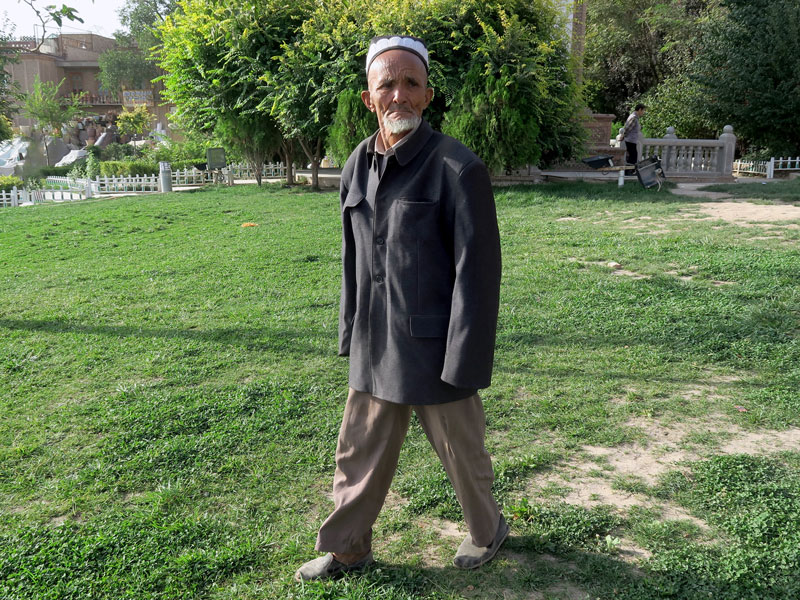 Anziano in un giardinetto a Kashgar