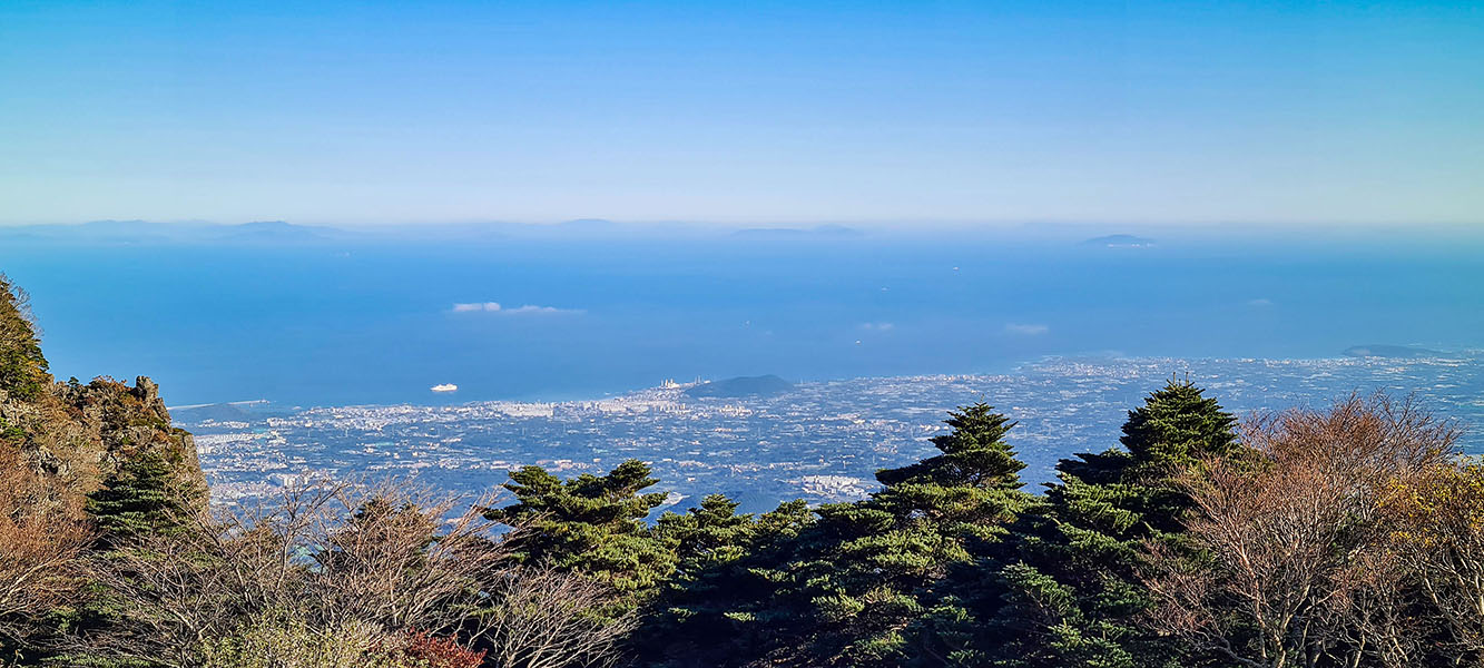 Panorama della costa sud di Jeju dalla vetta dell'Hallasan