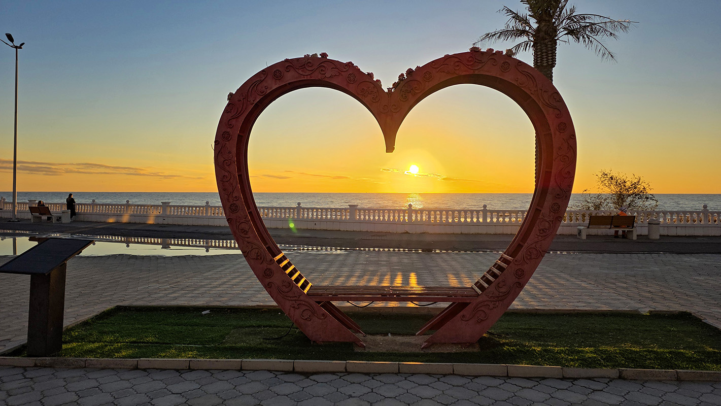 Tramonto sul mar Caspio dalla corniche di Aqtau