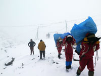 Panorama a 360° da Lhonak sul ghiacciaio che scende dalla parete nord del Kangchenjunga