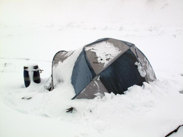 La mia tenda al c.b. dopo una nevicata