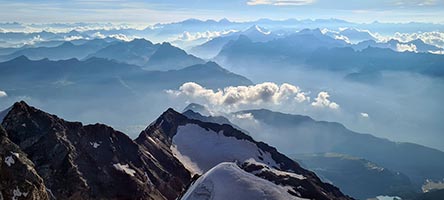 In vetta al Palù centrale, 3900 m, volgendosi ad est il 12 agosto 2024