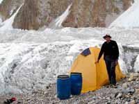 Stamani, il nostro gruppetto di 4 è rientrato al base, sano e salvo ma piuttosto scoraggiato, devo ammettere. L'idea di risalire il terribile couloir dei giapponesi, carichi di tutto, ci spaventa non poco. La prossima settimana dovrebbe esserci una nuova finestra di bel tempo e magari - se troviamo qualcun altro disposto a salire con noi - ci potrebbe essere spazio per un altro tentativo. Per il momento, sta nevicando fitto e vogliamo solo pensare al riposo. E' di poche ore fa la notizia giunta via radio che un canadese della nostra spedizione, Marc André Béliveau, impegnato sul G2 (ieri ci sono stati i primi 5 successi della stagione, tra cui Giampaolo Corona, unico italiano a cui vanno le nostre congratulazioni) è stato colpito da una lieve forma di edema cerebrale e sta ora scendendo, assistito, ma con le sue gambe dal campo tre all'uno. La situazione è sotto controllo e proprio i 6 membri del team di Gerfried che si trovano ora sul G2 gli stanno prestando assistenza. Queste montagne non sono uno scherzo per nessuno e il disastro può trovarsi sempre dietro l'angolo. L'infaticabile Louis, dopo un sol giorno di riposo al base, è intanto ripartito per il c1 (che, lo ricordo, è in comune coi due Gasherbrum) assieme ad Alex e un portatore con ossigeno e generi di conforto per aiutare Marc Andrè domani nella sua discesa dal campo uno al base. A domani per gli aggiornamenti.