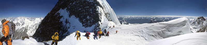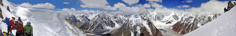 Panorama a 180° dalla sella tra la cima centrale e quella sud del Broad Peak