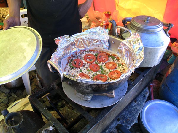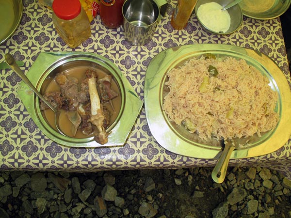 Riso e stufato di capra in tenda mensa